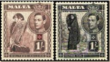 What started out as an April Fool’s joke nearly ended up as the 1/- value for the 1938 definitive set. The design was drafted by W. W. Higgins at Waterlow’s and submitted on 1st April 1937. The fact that no such bird exists escaped the authorities’ notice and the falcon, with the Maltese Cross on its chest, almost made it. However, the Governor - General’s Secretary, Henderson Pippit, a keen ornithologist, twigged it was a leg-pull. Higgins duly accepted early retirement. The Maltese Girl replaced the disgraced bird of prey.